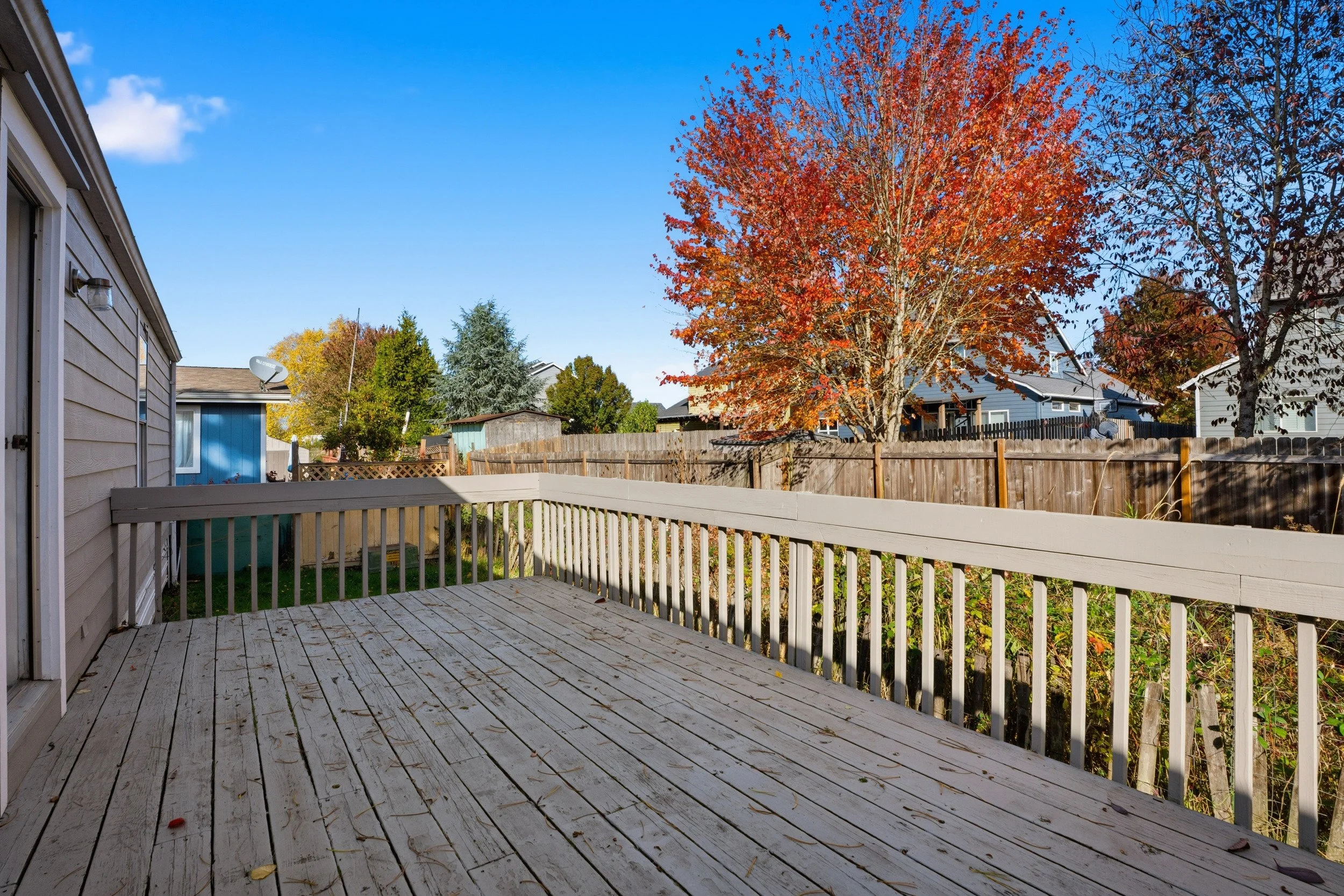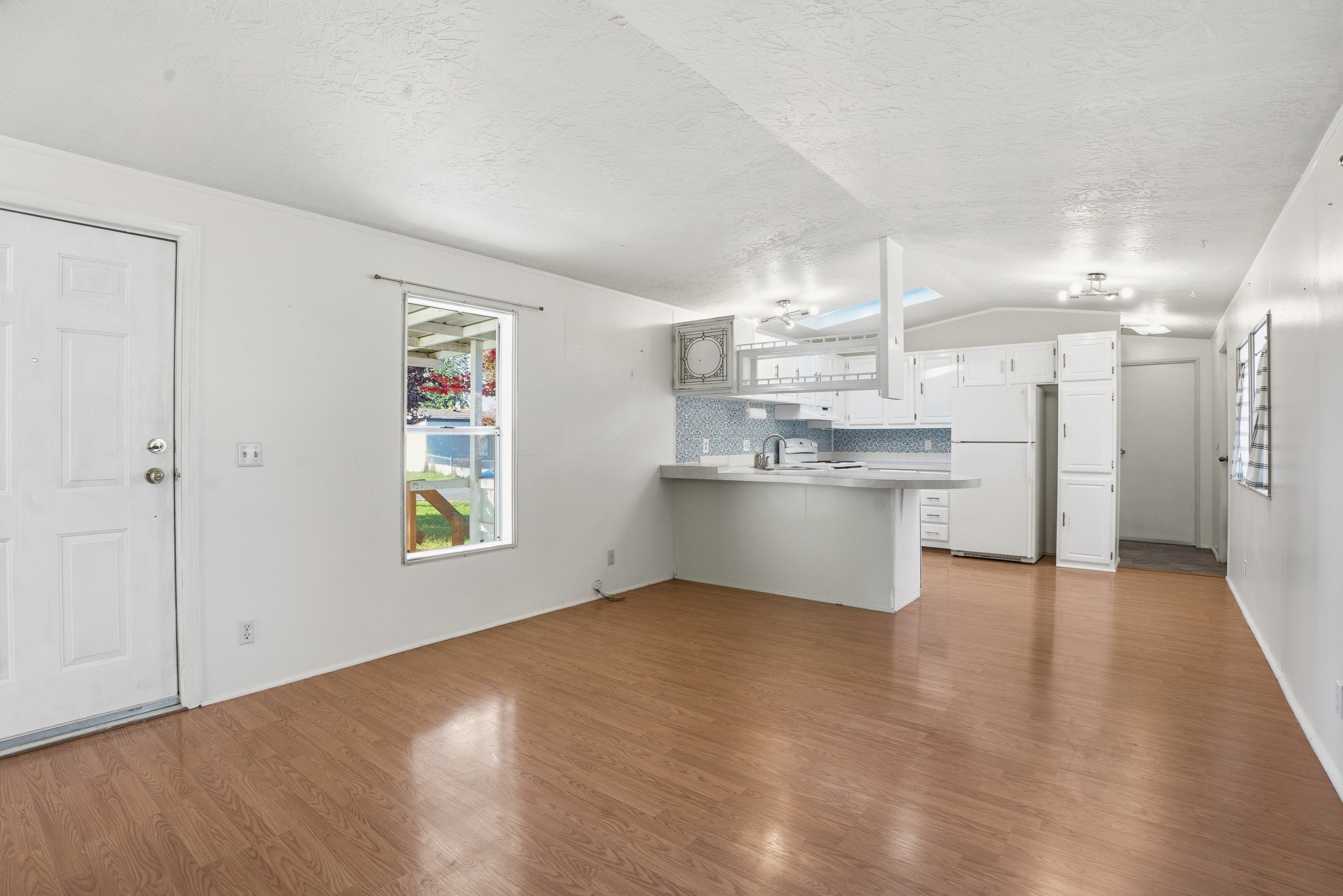 Wow! Adorable, UPDATED 2 bedroom, 2 bathroom manufactured home tucked away in the corner of a quiet ALL-ages park! NEW heat pump, stove and dishwasher all installed in the summer of 2024! The kitchen skylight brings natural light into the home, which has a thoughtful layout with bedrooms at opposite ends. Primary suite features a walk-in shower and a walk-in closet. Big covered front deck and large back deck with a view of a seasonal water feature! Unique, triangular corner lot features an apple tree and provides extra green space and privacy. Act now and schedule your tour today!